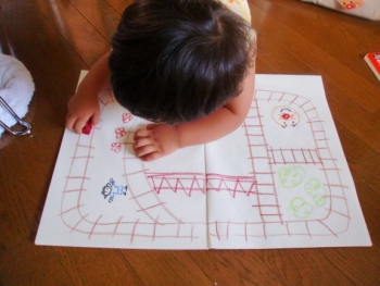 うちも、画用紙にクレヨンで道や線路や信号かいてあげたののほうが