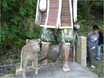 吉備津彦神社の境内の外(駐車場の片隅)にある桃太郎像です。