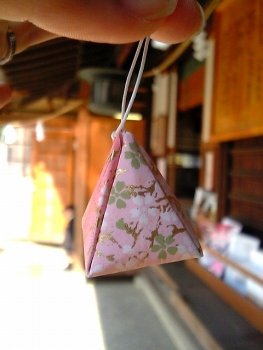 三角の中に、すずが入っているかわいいおみくじ。