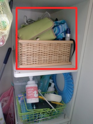 洗濯グッズのある棚の、雑巾入れにぶち込まれています(泣)