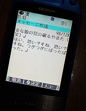 彼がで寮で(一人で)「呪怨」のDVDを見ていたときの、リアルタイムな感想メールでありました。