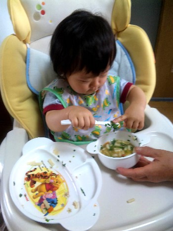 最近、フォークに加えてスプーンも使いたがるようになりました。