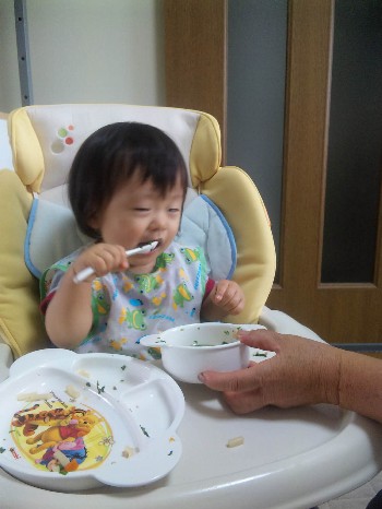 食べさせようとすると、ママの手から奪う。奪い取る。