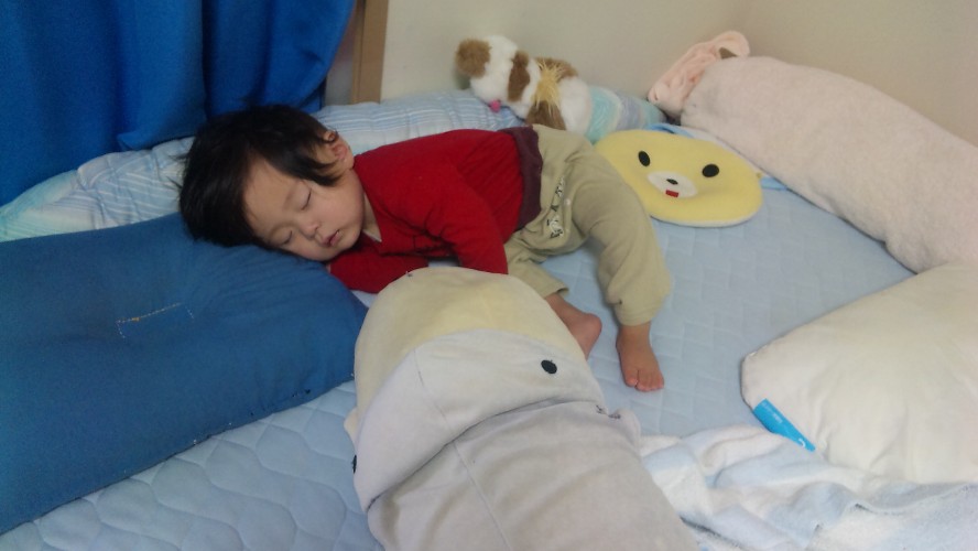 寝かしつけては、起き、脱走し、イタズラし、どこかをぶつけ、泣く。