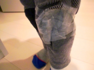 ようやく膝のつぎあてを買い(ダイソー 105円)、