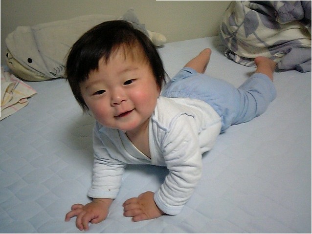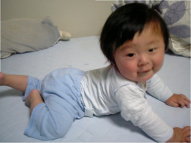 ハイハイで積極的に近づいてきた女子。