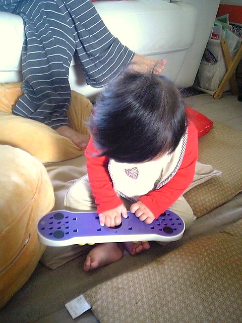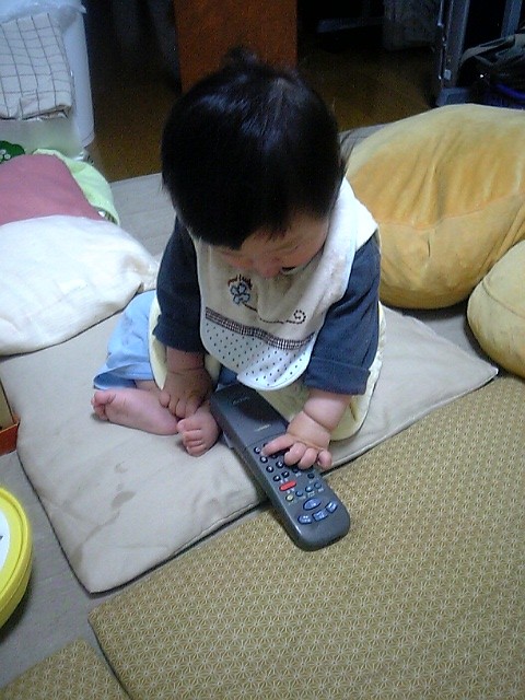 デジタルテレビのリモコンやビデオのリモコンに興味津々なので、