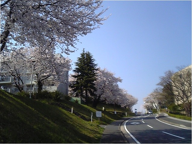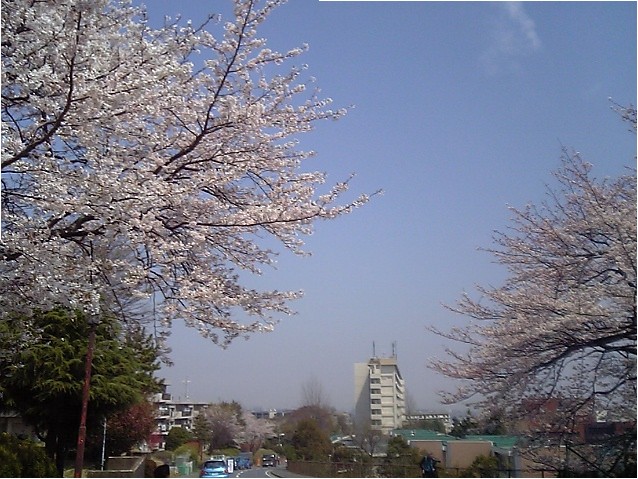 社宅の桜。坂がキツイ・・・この頂上が我らのお城よ。