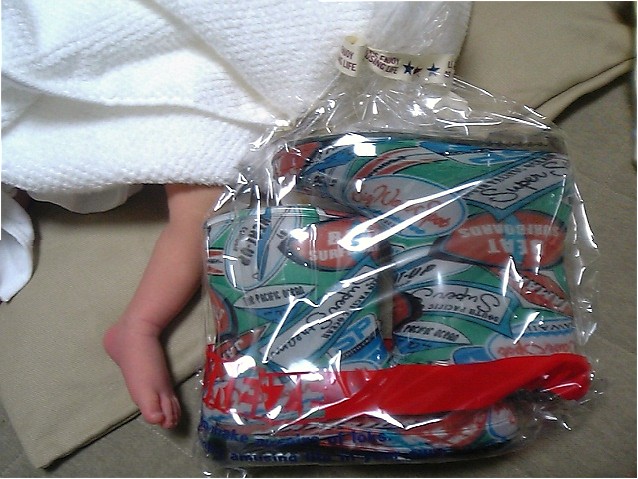 ヨドバシの紙袋に勇者カイのオムツ1式。