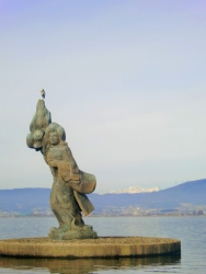 諏訪湖にフツーに放置されているって言う感じだけど。