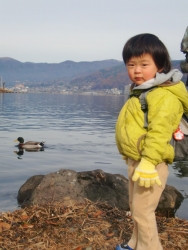 諏訪湖の湖畔は寒いんです。