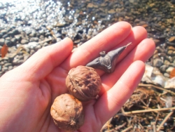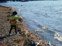 胡桃が沢山流れ着いていた諏訪湖畔。