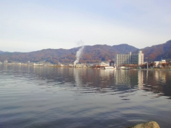 諏訪湖には人工の島「初島」(花火を打ち上げる島)があり、
