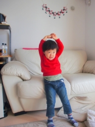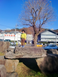 間欠泉センター脇にある石のアスレチック(?)が気に入った勇者カイ。