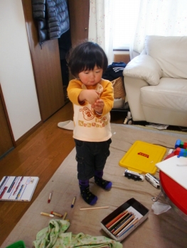 そりゃそうだ。3歳児にとってハンドルは回すもの。