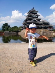 松本城にて、3時のポーズ。