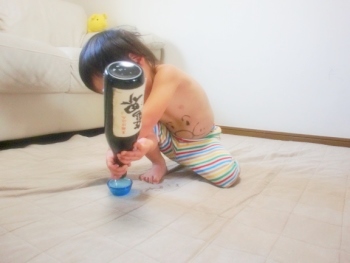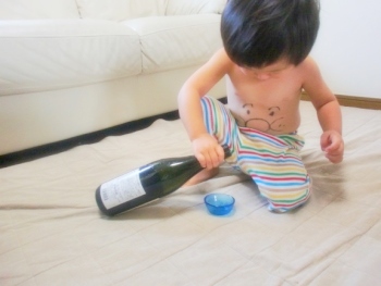 空になった焼酎の瓶とおちょこを渡す。