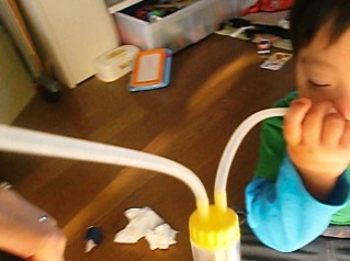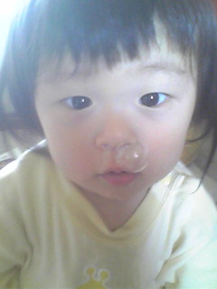 「ハナブー」をさせて鼻水(鼻ゼリー)をふき取る・・・という作業を繰り返していたら。