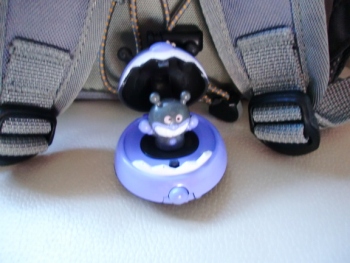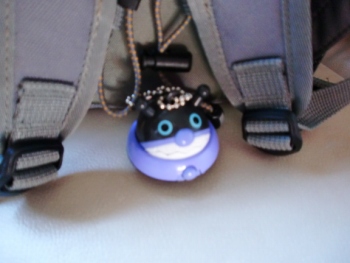 以来、バイキンマンはリュックの後ろ・・・チャック部分につけてます。