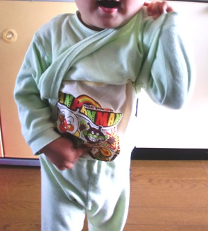 しかし、もうサイズ85のロンパース風インナー(股がスナップで留まるヤツ)は、